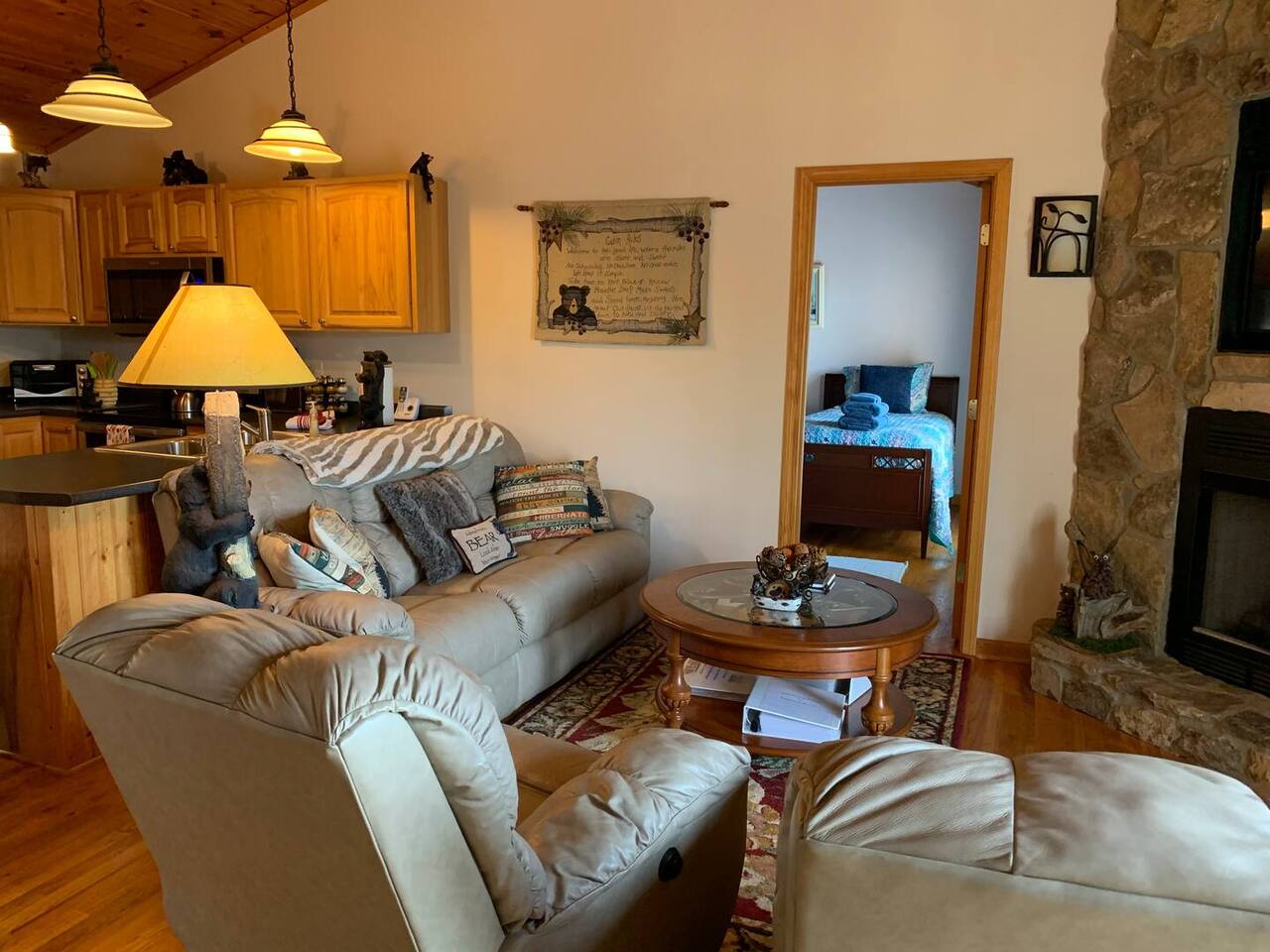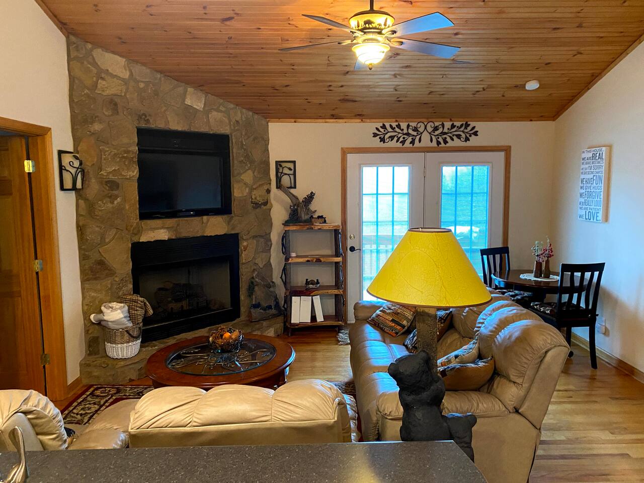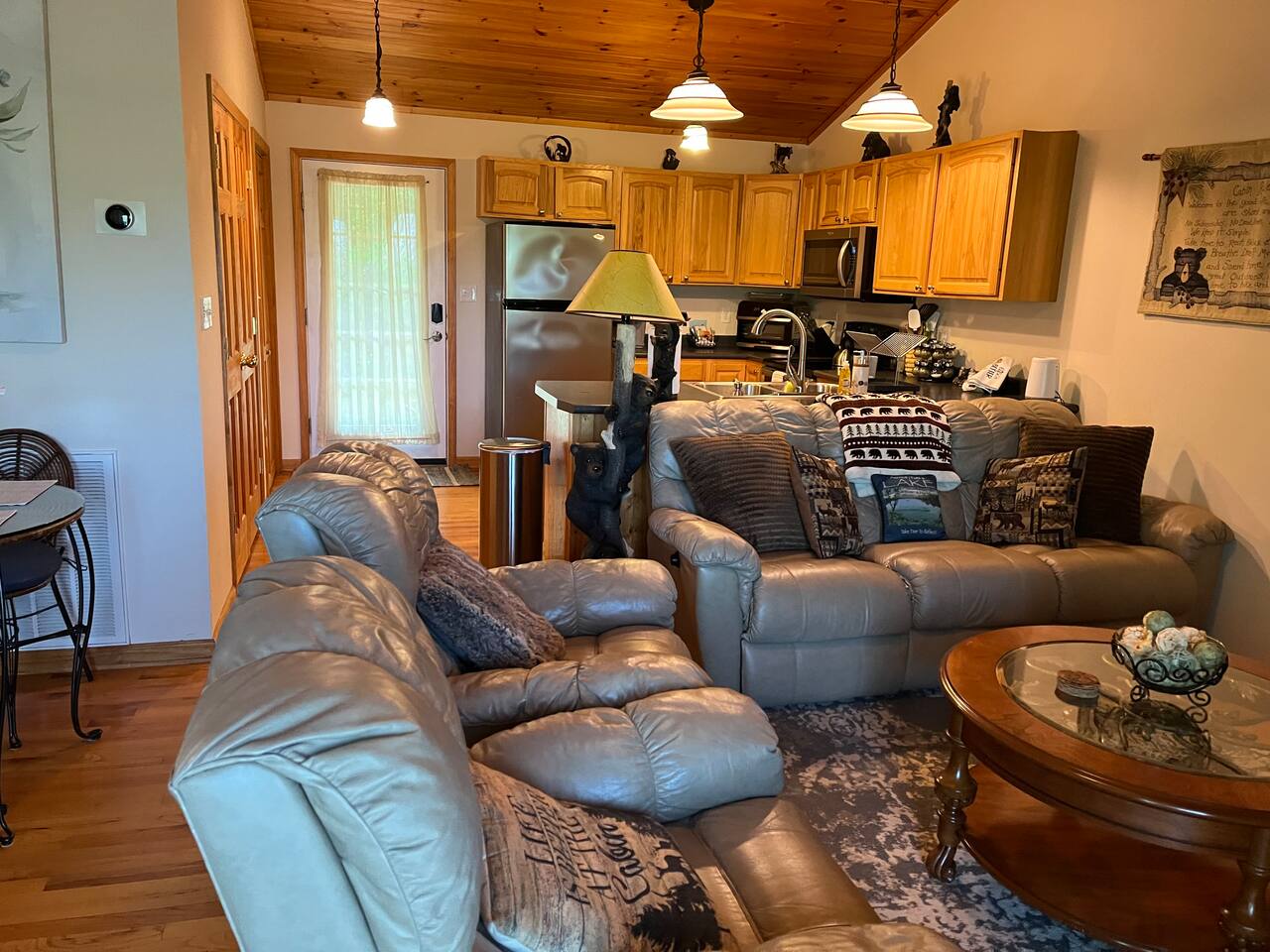 After a short drive through the Cherokee National Forest, you will arrive at Paradise Peak, located less than half-a-mile walk to Watauga Lake. Exactly .45 mile according to Map My Walk. A scenic path leading to the lake is just steps from the driveway. There are three stretches of uphill terrain on the walking path coming back from the lake. There is a bench that seats two which is close to the water’s edge and overlooks the lake. (See updated photos of the lake access area). The area is not suitable for swimming; however, a public beach is only about a 10-minute drive. Bank fishing is possible, but not ideal. A preferable area for fishing is located at the boat launch about 1.5 miles from the cabin. Wautaga Point Recreation Area is only 6 miles from the cabin. It is a beautiful, spacious lakeside spot with picnic tables, grills, hammocks, restrooms, etc. Areas for bank fishing. SEE PHOTOS. If you are an early riser and enjoy drinking your coffee on the deck, or peek out your bedroom window, you may get a glimpse of deer grazing in the meadow below the cabin. Don’t despair if you like to sleep until the later morning hours because the deer can be seen at dusk too. At times, while sitting on the deck, sipping a beverage, and enjoying the sunset over the mountain, I have had the joy and contentment of watching as these graceful creature’s graze and frolic. Nature's splendor! Additional amenities that our cozy home-away-from-home offers are: ~ The kitchen is fully equipped with everything necessary to meet your culinary expectations and needs. ~ Washer and dryer. ~ High-speed Wi-Fi and YouTube TV. ~ Televisions in both bedrooms, and living room with Smart TV and DVD player. ~ Four reclining seats in the living room - two on the couch and each chair. ~ Cards, board games, and books for those rainy days. ~ Outdoor gas grill. ~ Gas fireplace with remote control. ~ Bluetooth soundbar to play your favorite music. ~ There is a deck that runs the entire length of the cabin with an abundance of seating areas for all to enjoy. A rolling umbrella (Shademobile) provides shady comfort all day. ~ An outdoor fire pit with seating for six. ~ Sunsets that will remind you of why you chose Paradise Peak for your vacation destination. DURING THE WINTER MONTHS FOUR-WHEEL DRIVE IS RECOMMENDED. There is one steep uphill stretch leading to the cabin.