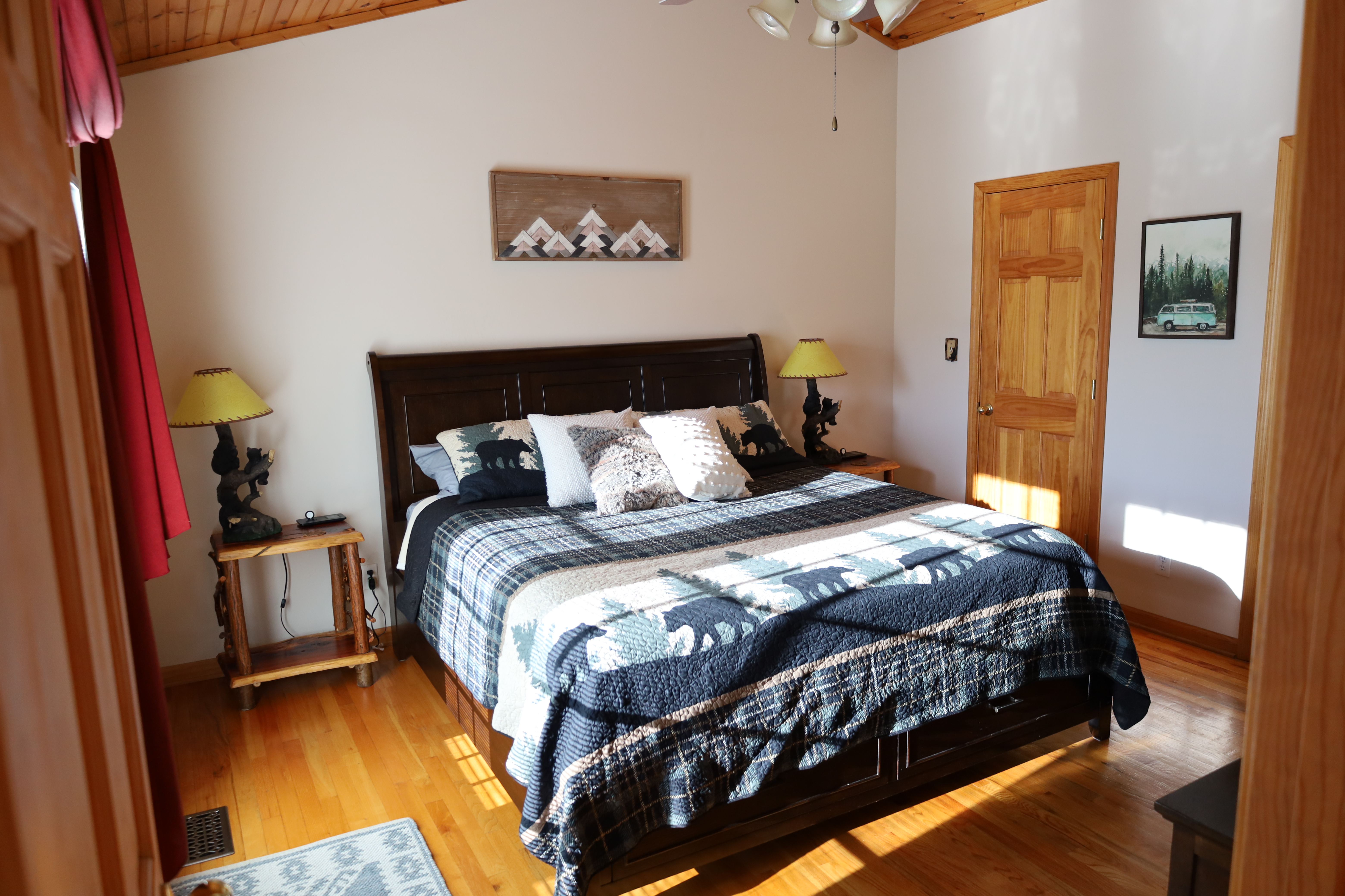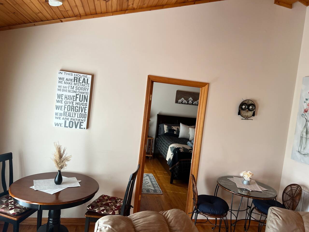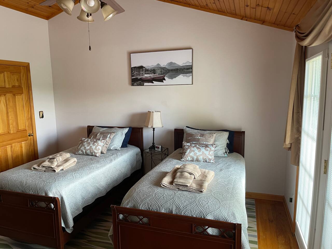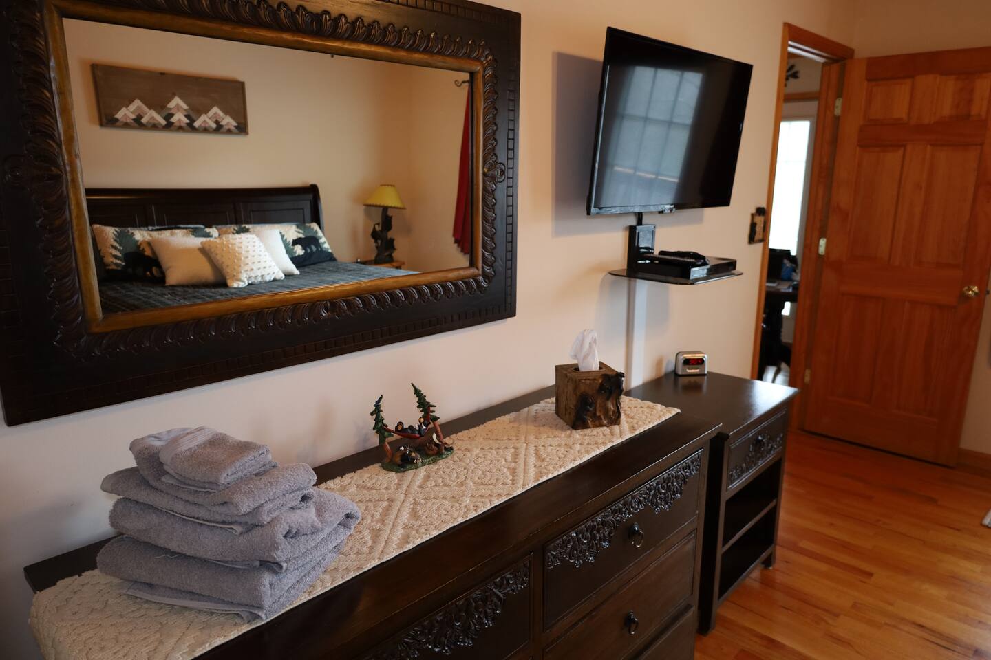 After a short drive through the Cherokee National Forest, you will arrive at Paradise Peak, located less than half-a-mile walk to Watauga Lake. Exactly .45 mile according to Map My Walk. A scenic path leading to the lake is just steps from the driveway. There are three stretches of uphill terrain on the walking path coming back from the lake. There is a bench that seats two which is close to the water’s edge and overlooks the lake. (See updated photos of the lake access area). The area is not suitable for swimming; however, a public beach is only about a 10-minute drive. Bank fishing is possible, but not ideal. A preferable area for fishing is located at the boat launch about 1.5 miles from the cabin. Wautaga Point Recreation Area is only 6 miles from the cabin. It is a beautiful, spacious lakeside spot with picnic tables, grills, hammocks, restrooms, etc. Areas for bank fishing. SEE PHOTOS. If you are an early riser and enjoy drinking your coffee on the deck, or peek out your bedroom window, you may get a glimpse of deer grazing in the meadow below the cabin. Don’t despair if you like to sleep until the later morning hours because the deer can be seen at dusk too. At times, while sitting on the deck, sipping a beverage, and enjoying the sunset over the mountain, I have had the joy and contentment of watching as these graceful creature’s graze and frolic. Nature's splendor! Additional amenities that our cozy home-away-from-home offers are: ~ The kitchen is fully equipped with everything necessary to meet your culinary expectations and needs. ~ Washer and dryer. ~ High-speed Wi-Fi and YouTube TV. ~ Televisions in both bedrooms, and living room with Smart TV and DVD player. ~ Four reclining seats in the living room - two on the couch and each chair. ~ Cards, board games, and books for those rainy days. ~ Outdoor gas grill. ~ Gas fireplace with remote control. ~ Bluetooth soundbar to play your favorite music. ~ There is a deck that runs the entire length of the cabin with an abundance of seating areas for all to enjoy. A rolling umbrella (Shademobile) provides shady comfort all day. ~ An outdoor fire pit with seating for six. ~ Sunsets that will remind you of why you chose Paradise Peak for your vacation destination. DURING THE WINTER MONTHS FOUR-WHEEL DRIVE IS RECOMMENDED. There is one steep uphill stretch leading to the cabin.