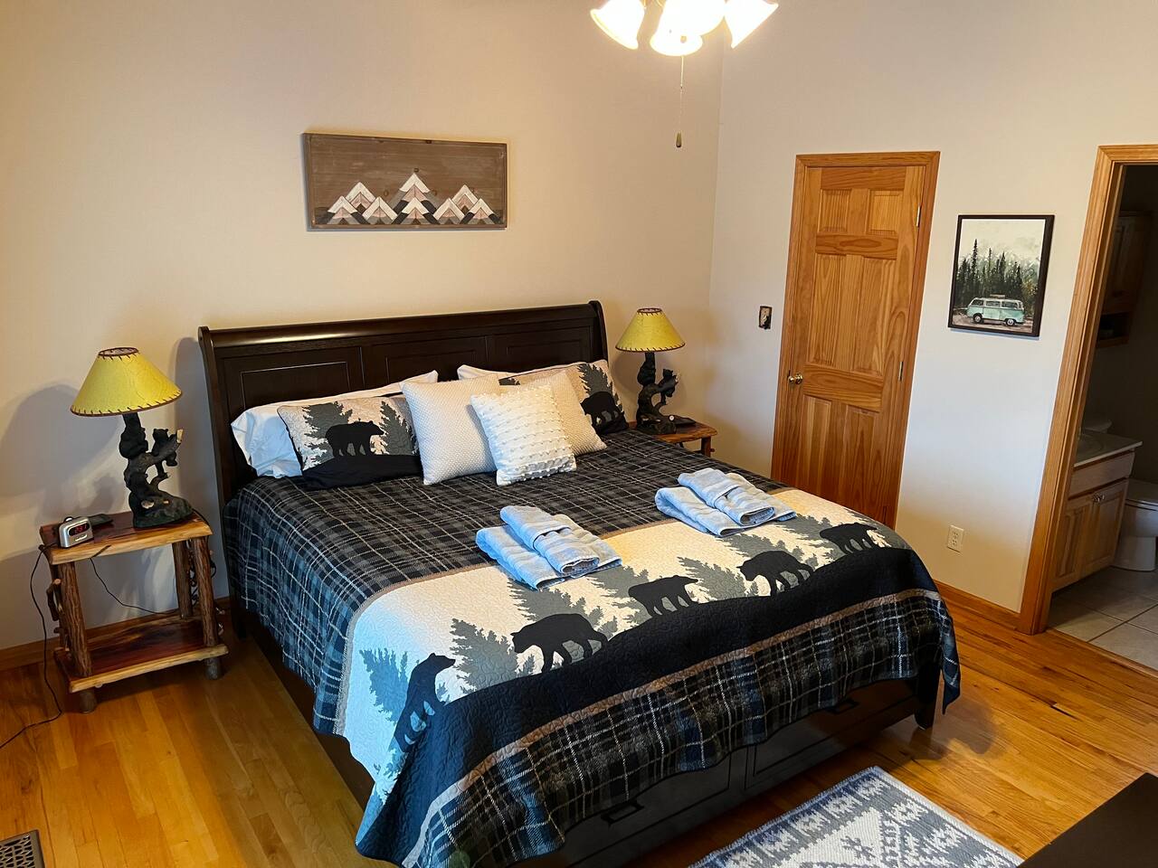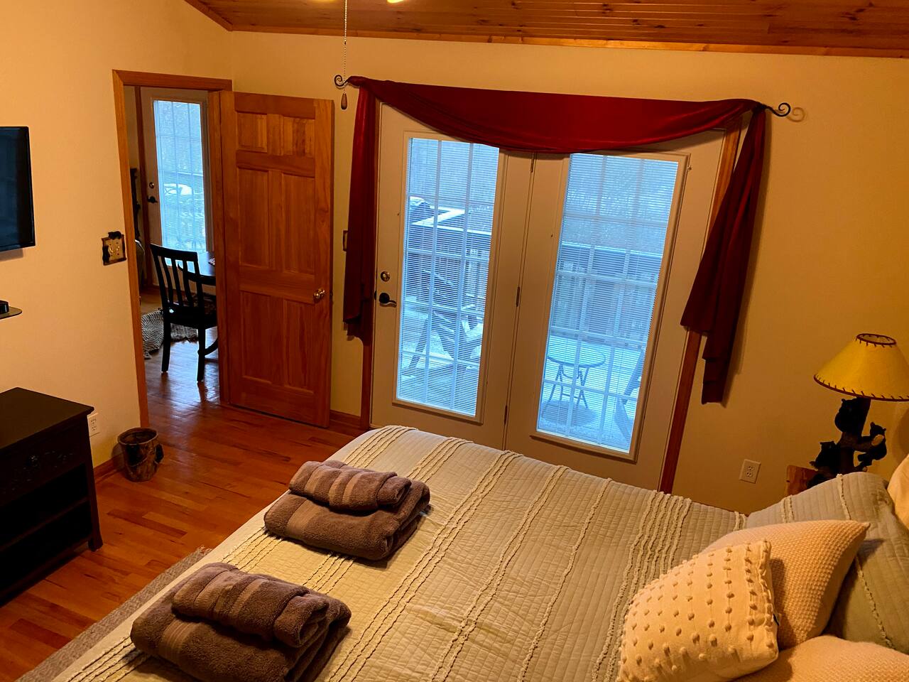 Cozy cabin! Magnificent views from all rooms! Experience the magic of the mountains! Two spacious bedrooms with walk-in closets, each with its own bathroom provides plenty of privacy for guests. (Split bedroom plan) Both bedrooms have a French door leading to the deck, delighting your visual senses with the serenity and majesty of the mountains. The living room has a French door leading to the deck as well.